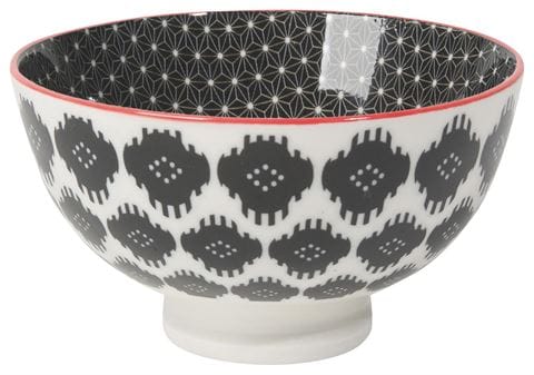 Eye-catching porcelain bowls with contrasting patterns are stunning, either as a collection or as accent pieces. Stamped designs have a wonderful texture and hints of colour circling hand-painted rims.